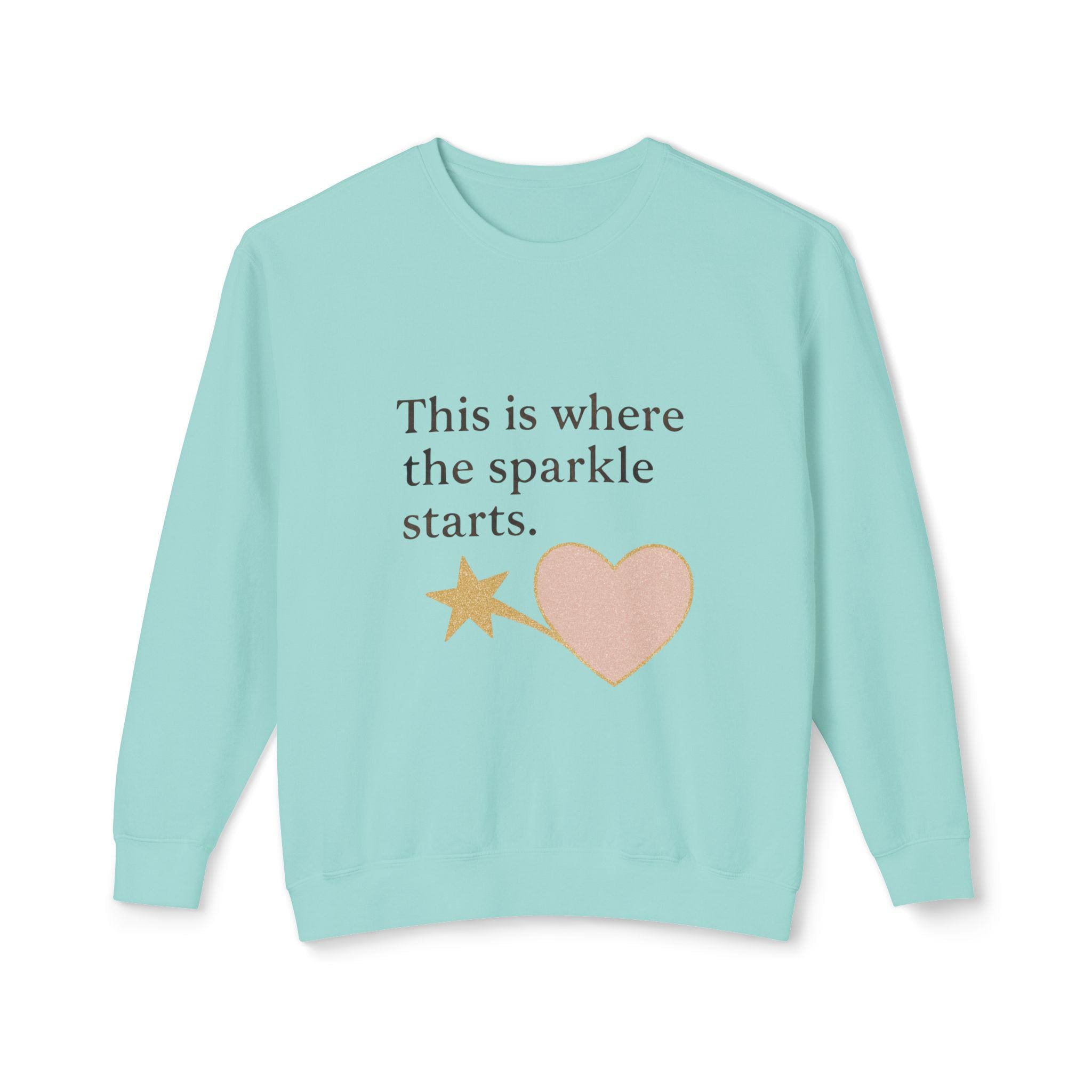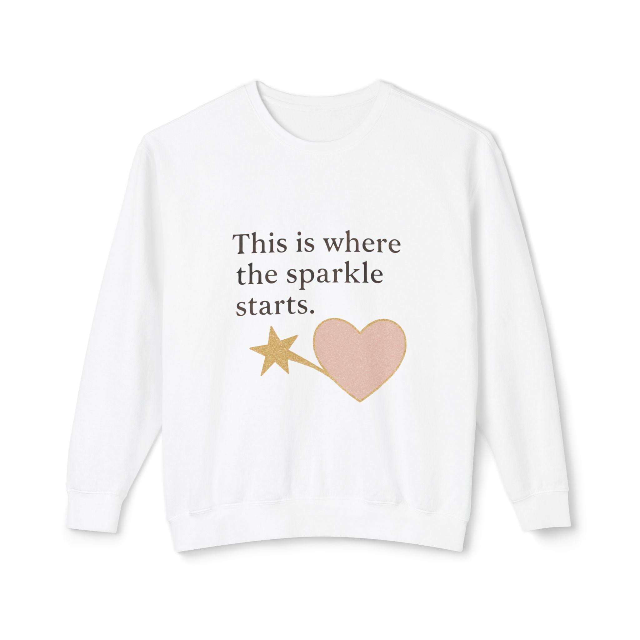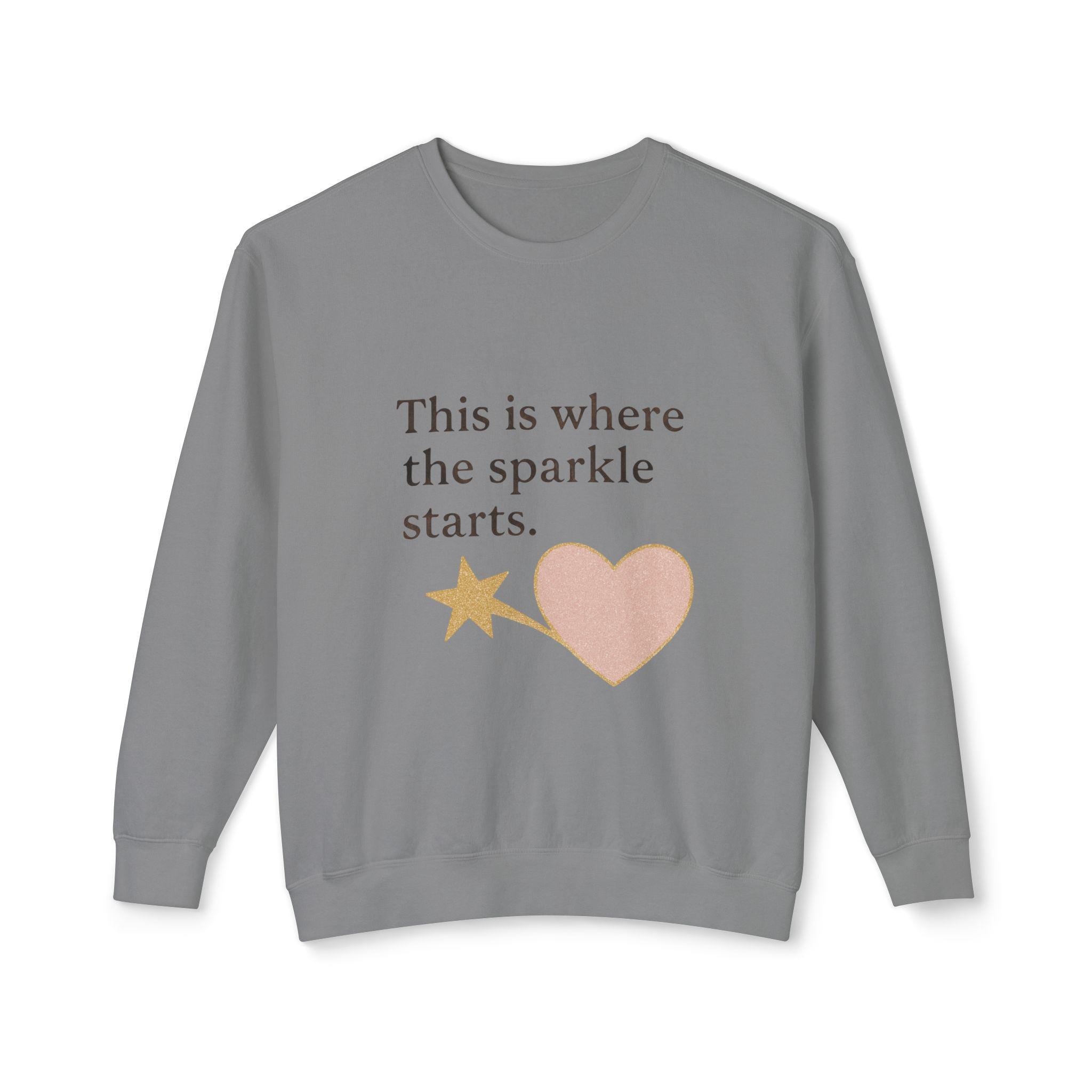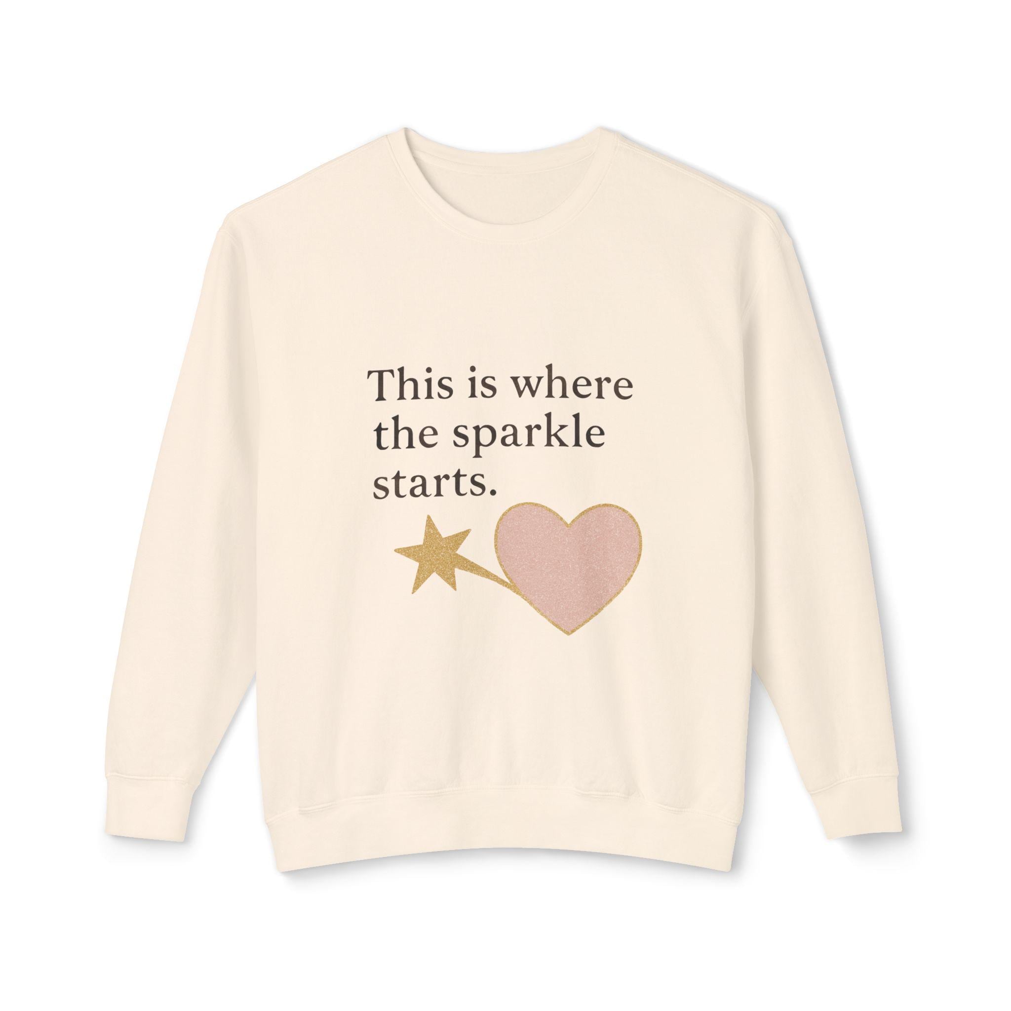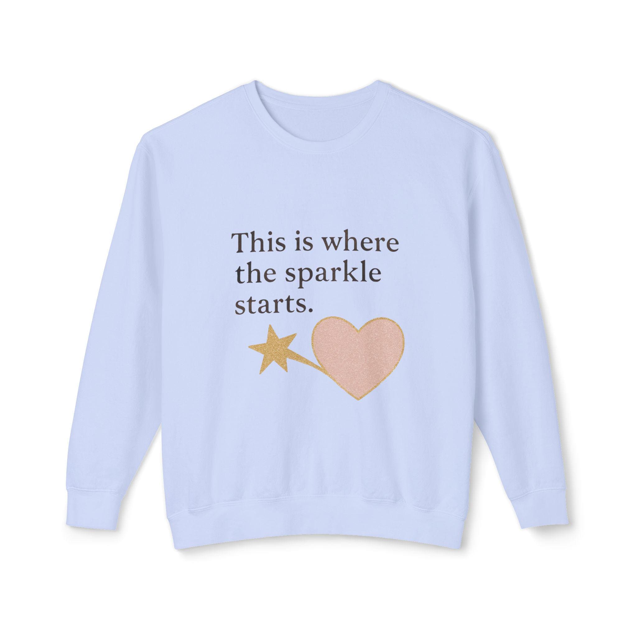 Brighten your wardrobe with this Unisex Lightweight Crewneck Sweatshirt, designed to inspire positivity wherever you go. With a playful message, "This is where the sparkle starts," this sweatshirt radiates a cheerful vibe, making it a perfect cozy companion for everyday wear or special outings. Ideal for friends, family, and anyone who loves to embrace their uniqueness, this sweatshirt fits seamlessly into casual gatherings, birthday celebrations, or simply a day of relaxation at home. Whether for gift-giving during the holidays or just a treat for yourself, it's a wonderful way to spread joy and good energy during any occasion.