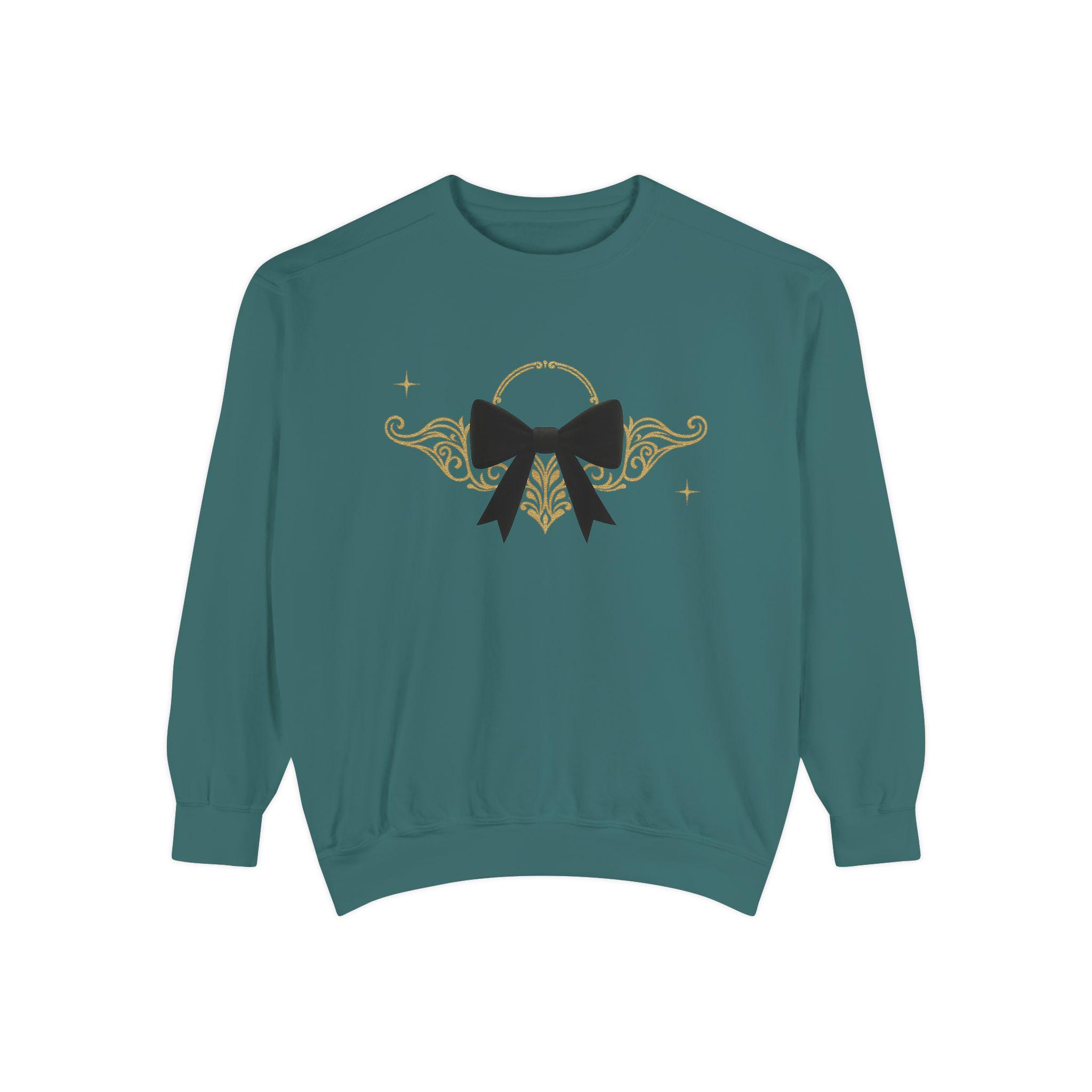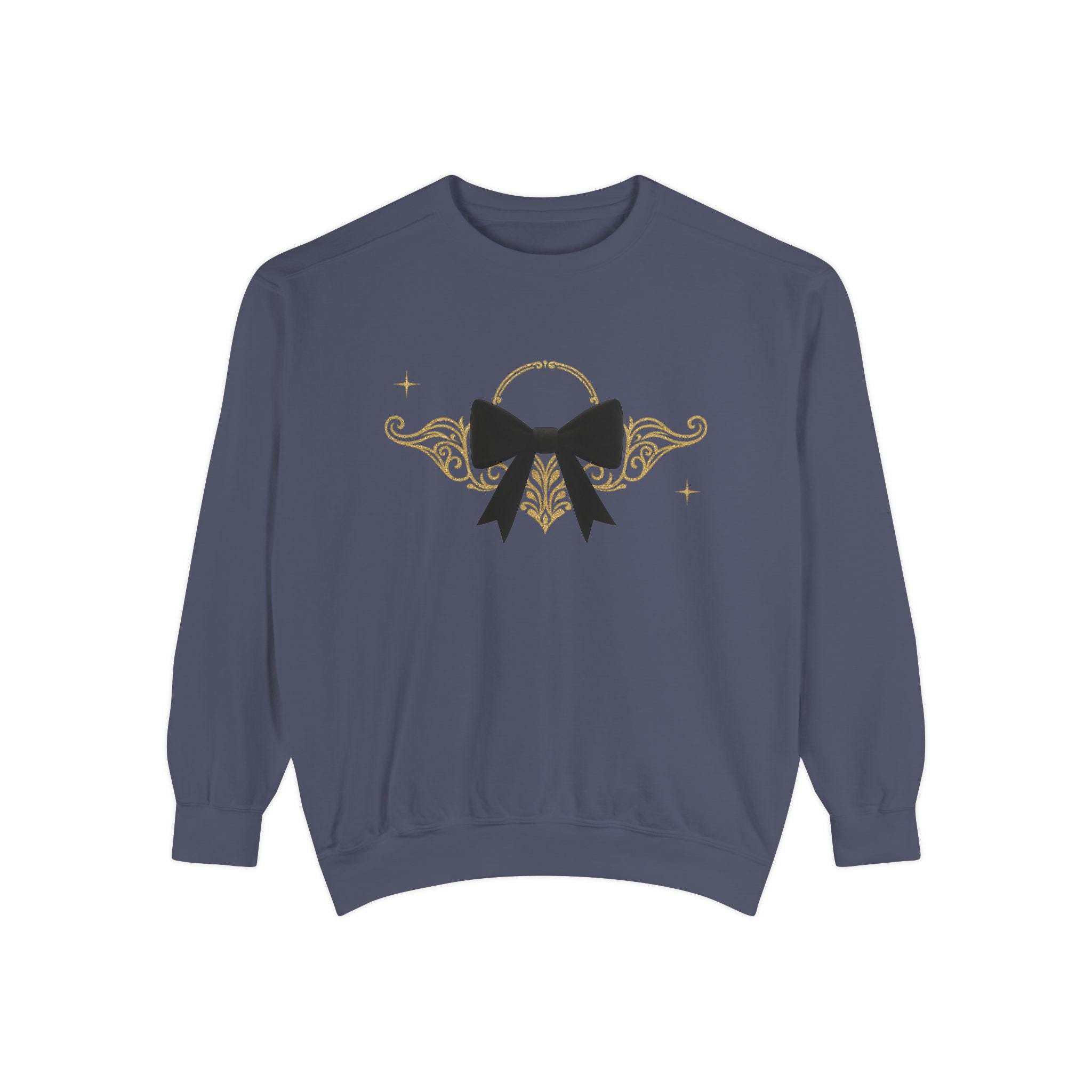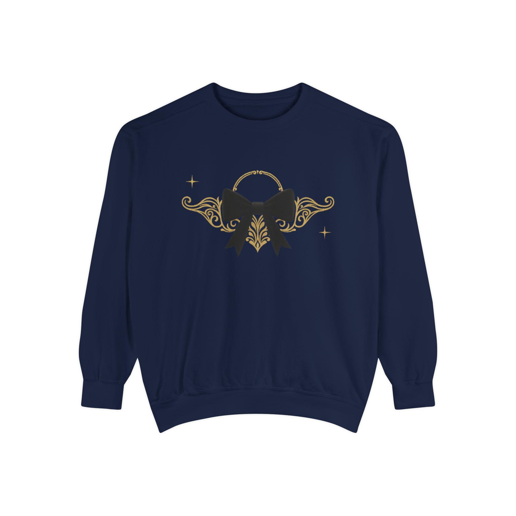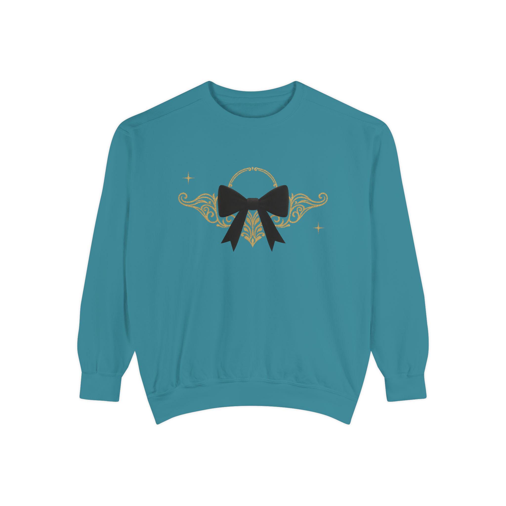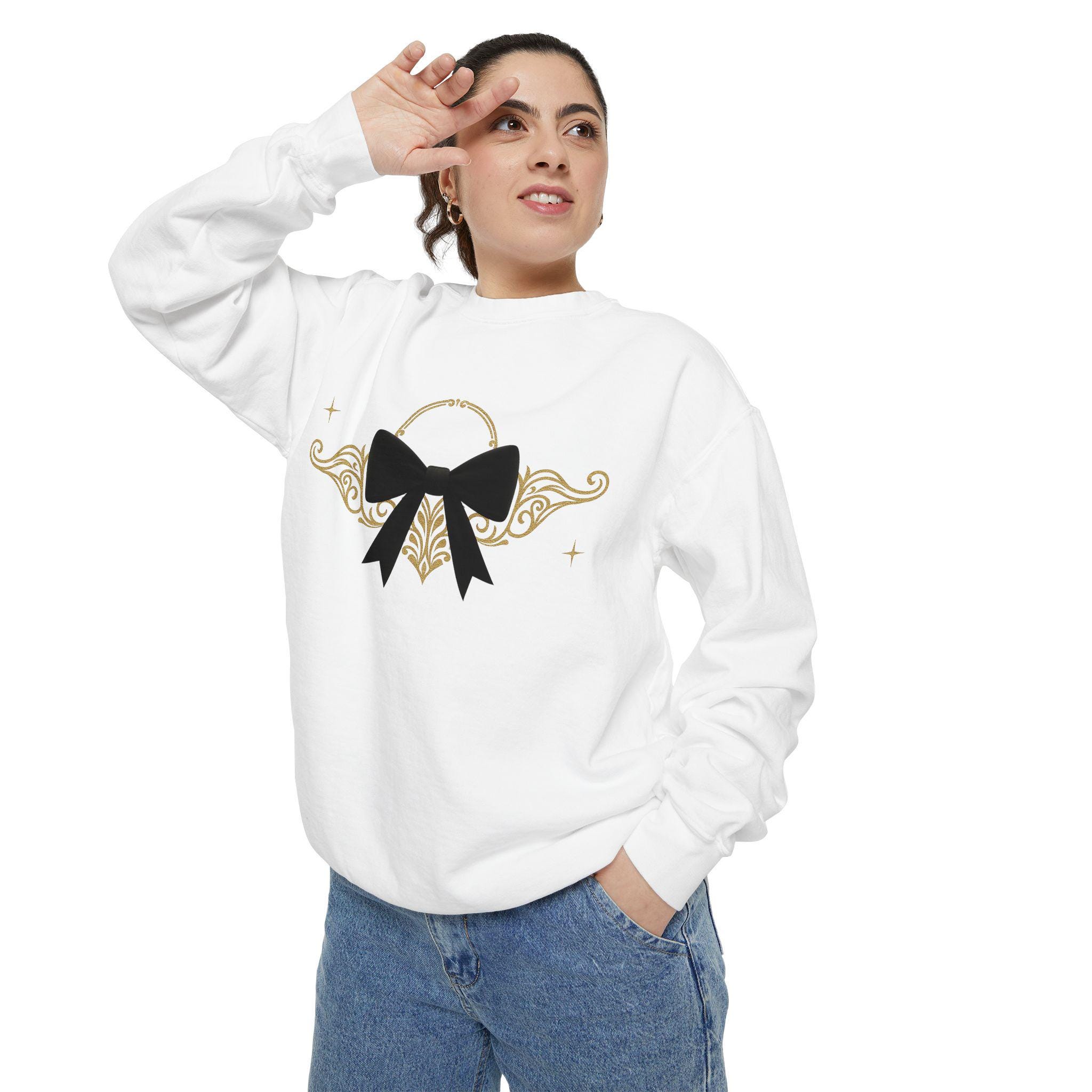 Introducing the perfect blend of comfort and style with this sparkle garment-dyed sweatshirt. This relaxed fit sweatshirt envelops you in a cozy embrace, making it an essential addition to your wardrobe for chilly days or lounging at home. The exquisite design featuring a chic bow adds a touch of elegance, making it suitable for casual outings or cozy nights in. It caters to those looking for fashionable yet comfortable apparel, perfect for anyone who values quality and uniqueness in their clothing. Ideal for gifting during holidays like Christmas, birthdays, and Valentine's Day, this sweatshirt is sure to delight friends and family alike. Celebrate life's moments in style with this luxurious and trendy piece!