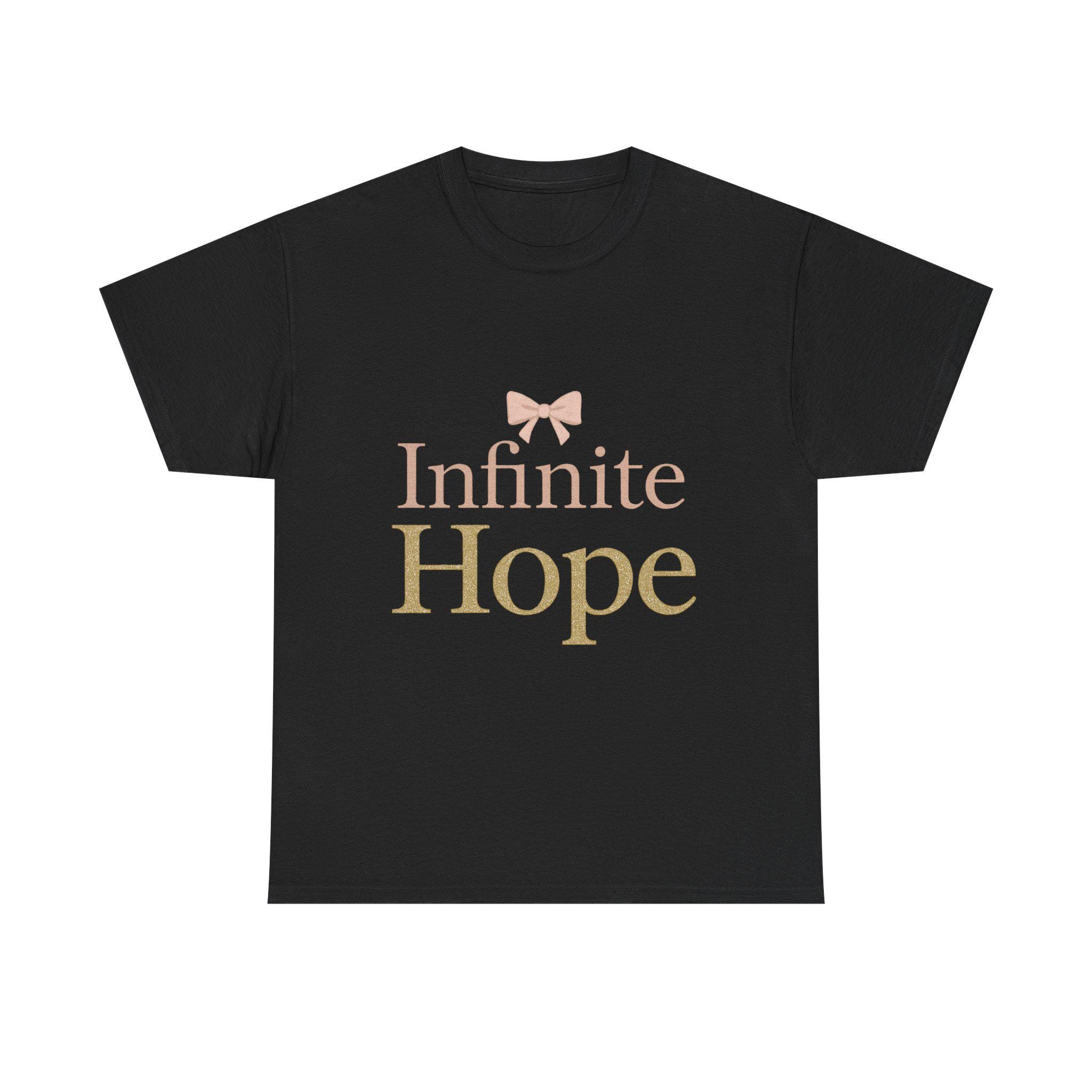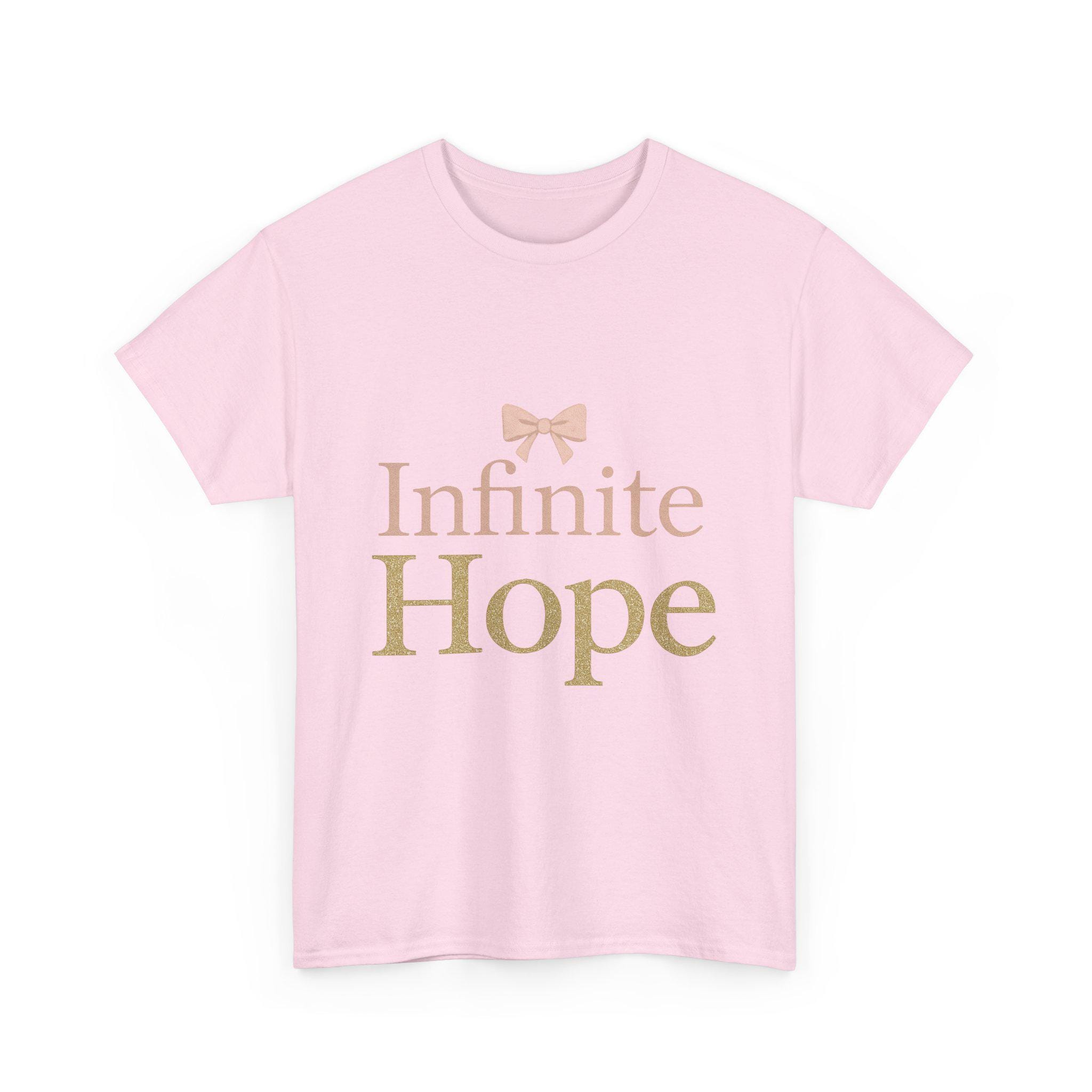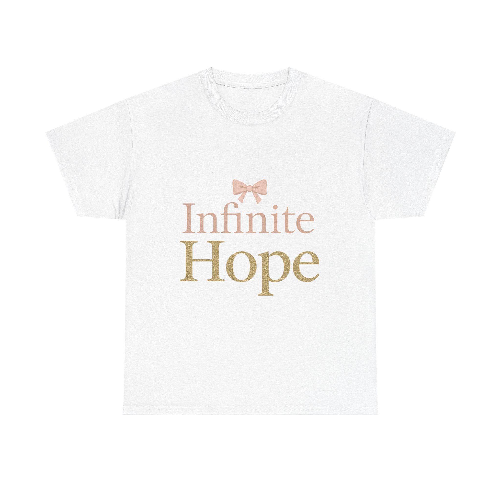 Embrace a sense of hope and positivity with this cozy Heavy Cotton Tee, crafted for comfort and style. Perfect for casual days out or relaxed evenings at home, this shirt seamlessly fits into any wardrobe. The elegant design, featuring the phrase "Infinite Hope" adorned with a charming bow, creates an uplifting vibe that resonates with dreamers and believers alike. Ideal for gifting on occasions such as birthdays, holidays, or even as a thoughtful gesture during challenging times, this tee celebrates resilience and optimism. Made for adults, it's a perfect addition to any wardrobe, promoting a message of hope wherever you go. Whether dressed up with a jacket for a night out or paired with your favorite jeans for a laid-back look, this tee is sure to be a staple in your collection.