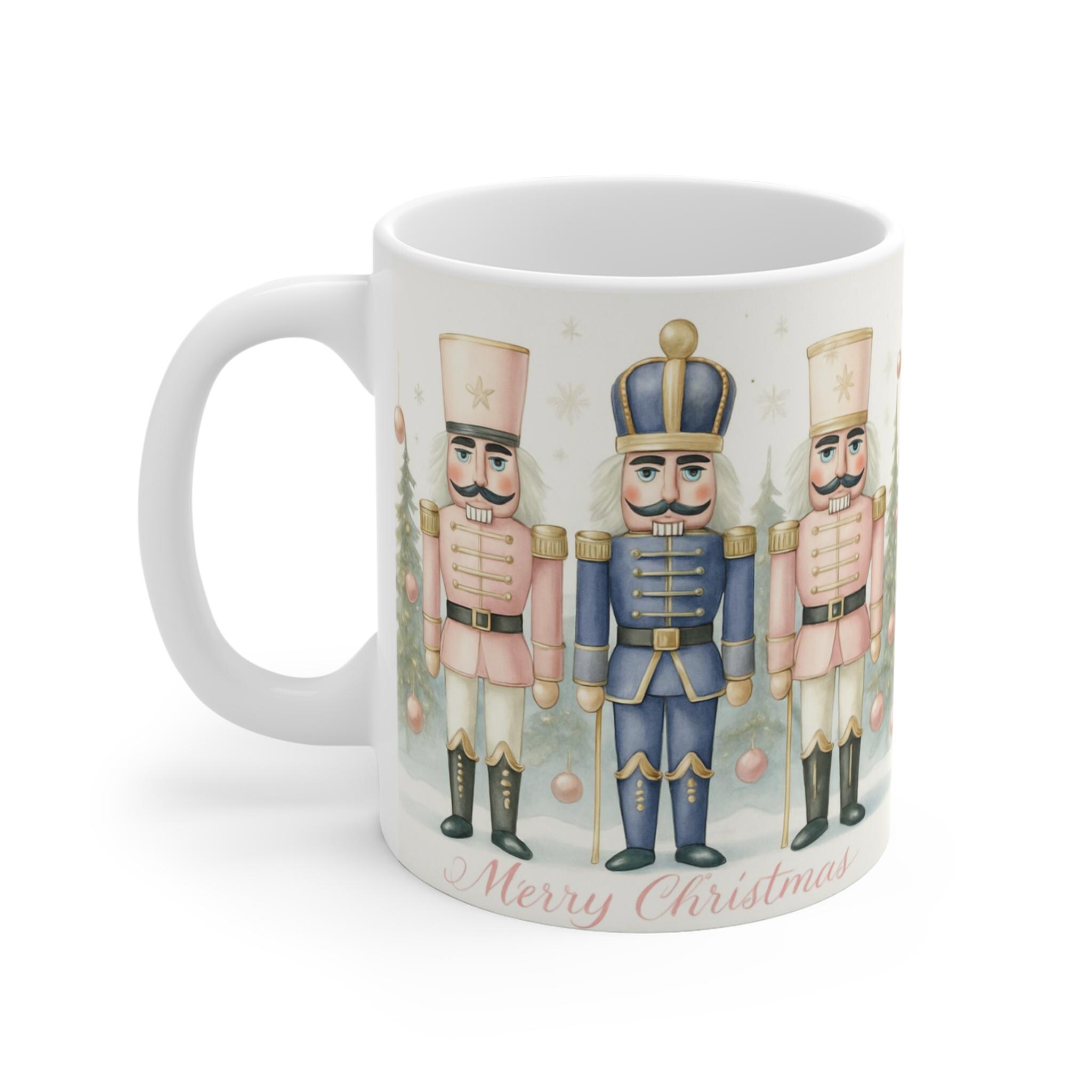 This charming mug- a perfect blend of functionality and Christmas festive charm- brings holiday cheer to your daily routine. Adorned with delightful nutcracker designs and soft pastel tones, it evokes a sense of nostalgia and warmth, making every sip a celebration. Ideal for coffee or tea lovers, this mug enhances your cozy evenings or holiday gatherings. It's a thoughtful gift for anyone who appreciates classic holiday decor or simply enjoys a fun, cheerful piece in their kitchen. Perfect for Christmas celebrations, Secret Santa exchanges, or as a stocking stuffer, this mug will surely spread smiles and joy during the festive season.