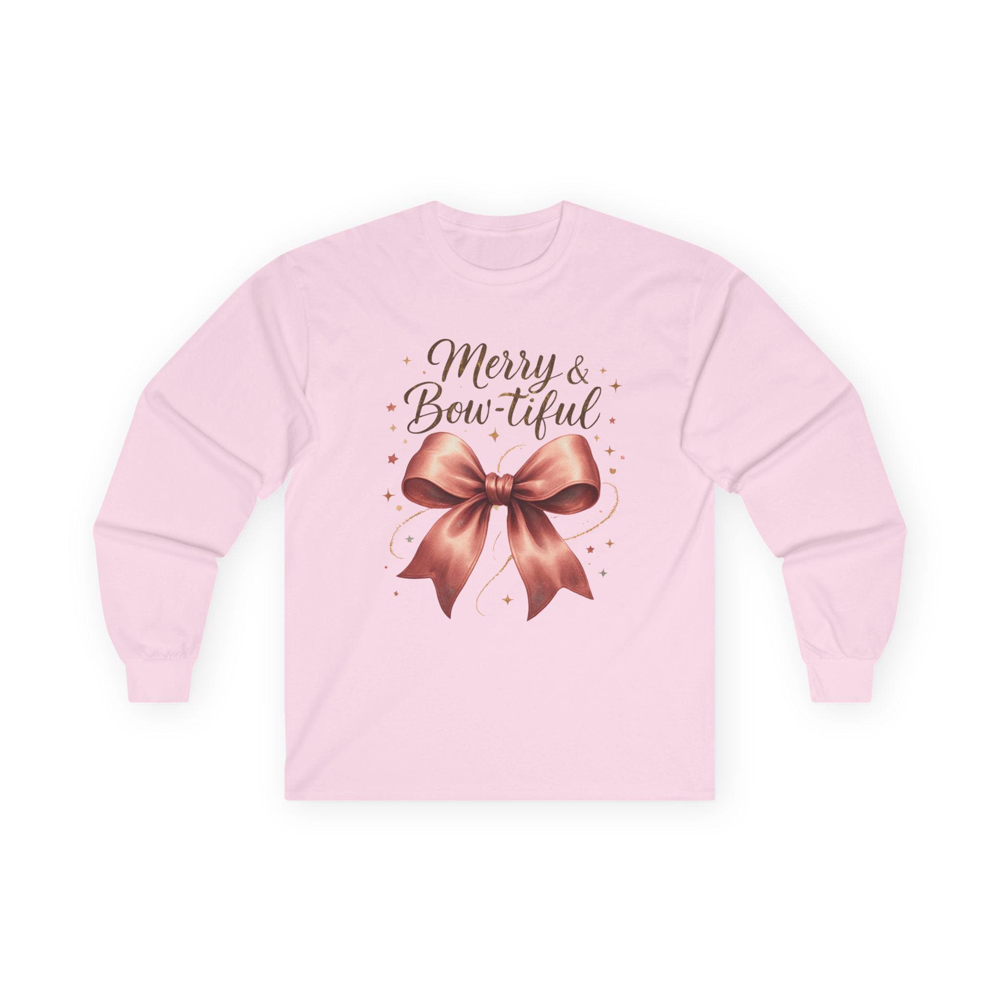 Dress the part with our ultra-cotton long sleeve tee — soft, feminine, and totally bow-obsessed. Featuring a satin-style oversized bow, gold sparkle accents, and coquette holiday flair, it’s perfect for festive brunches, cozy nights in, or wrapping gifts in style.