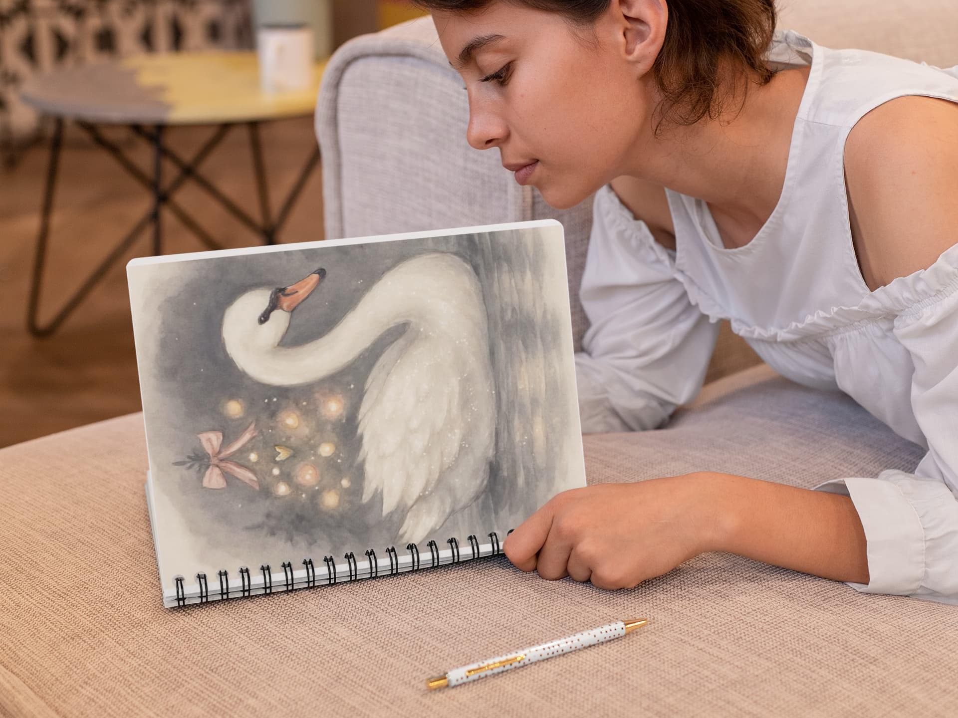 Drift into a world of winter wonder with this Swan Christmas Notebook — a soft, elegant journal that feels like a page from a storybook.