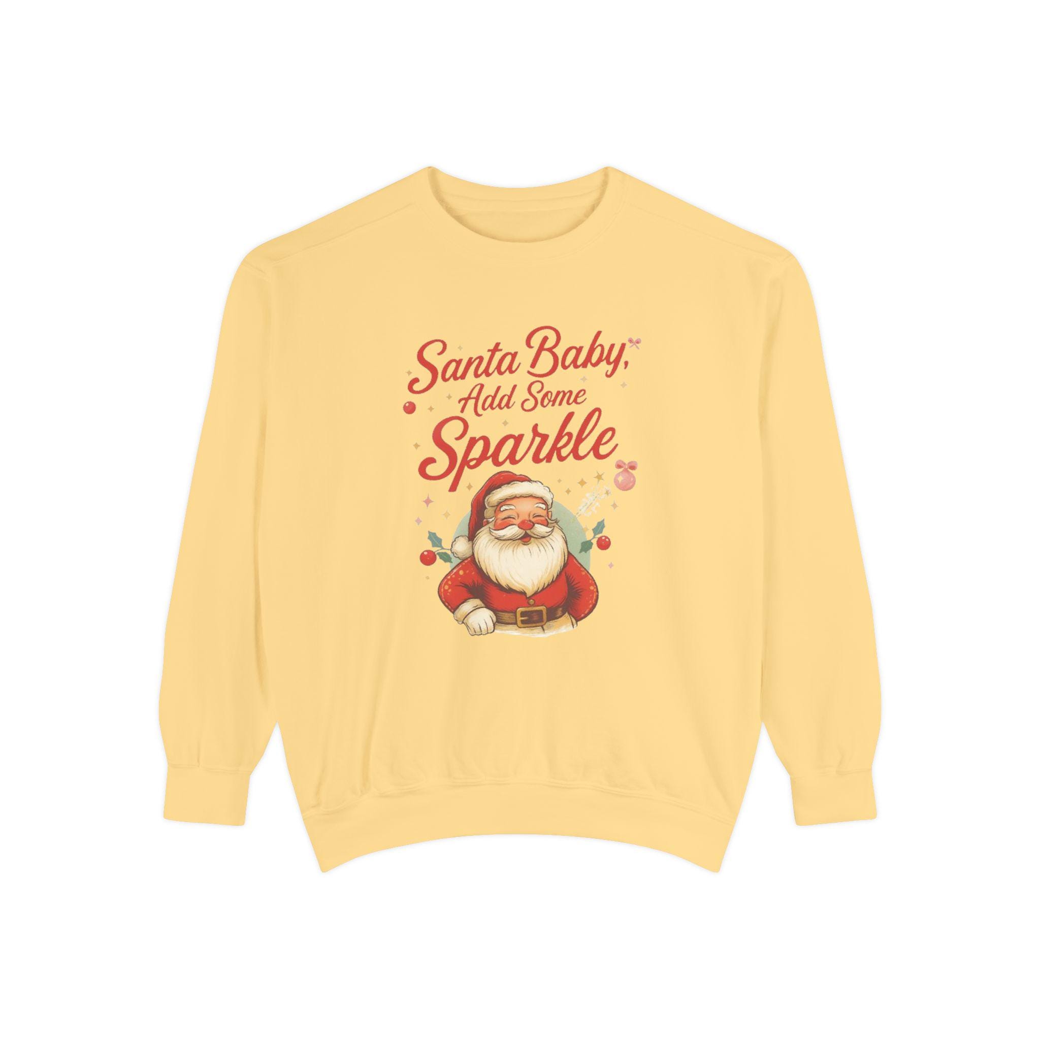 Flirty, festive, and oh-so sparkly — our “Santa Baby, Add Some Sparkle” sweatshirt brings vintage glam right to your holiday wardrobe. ✨