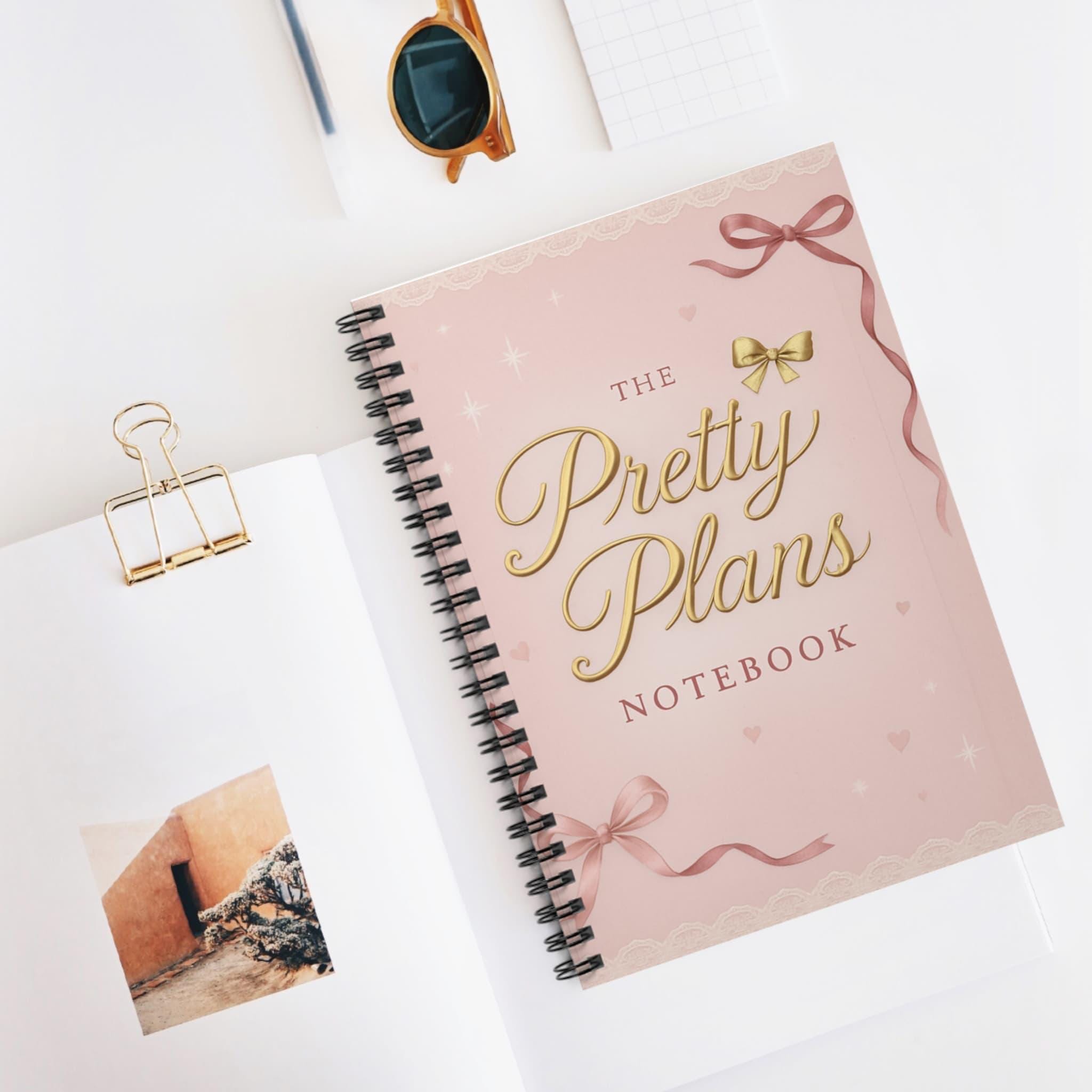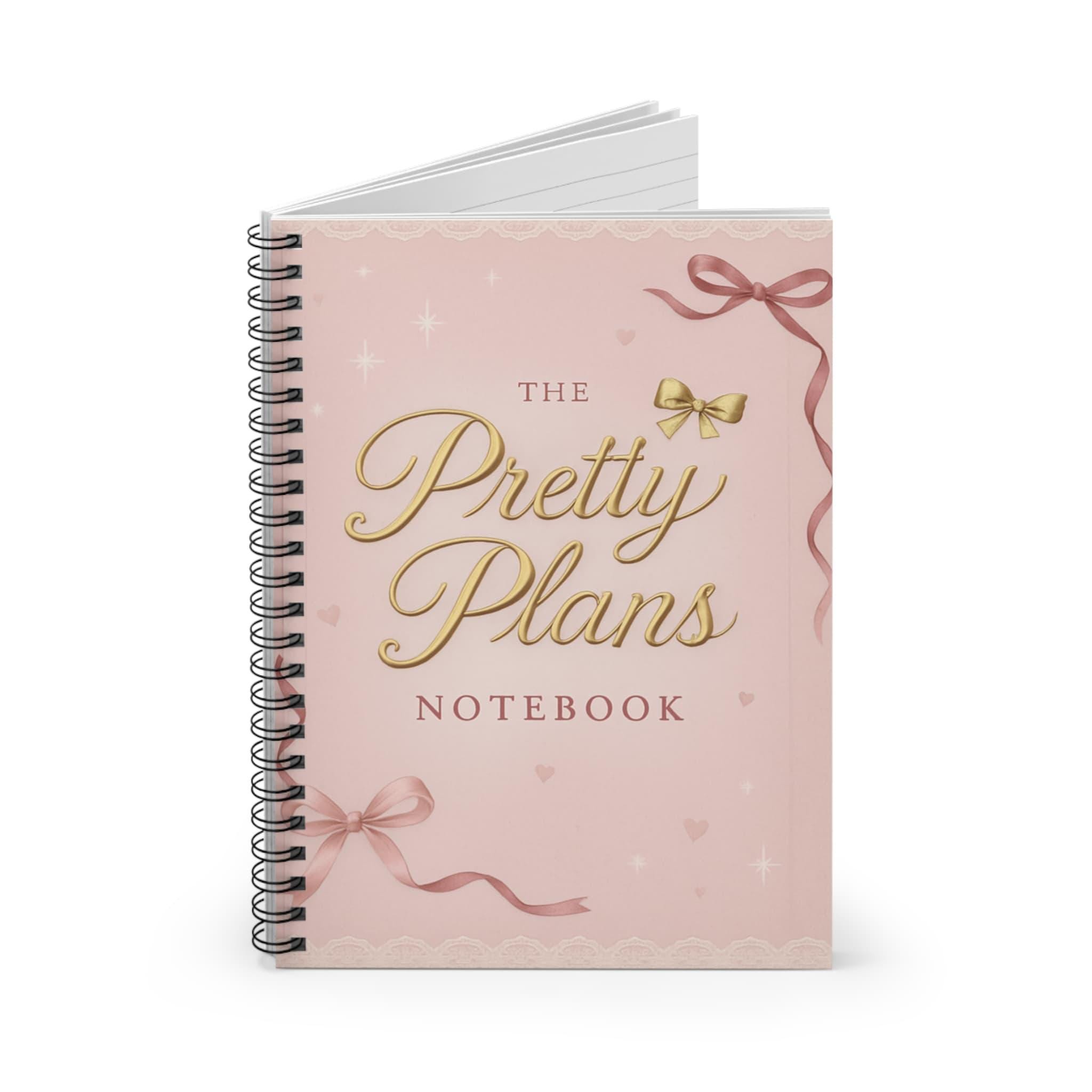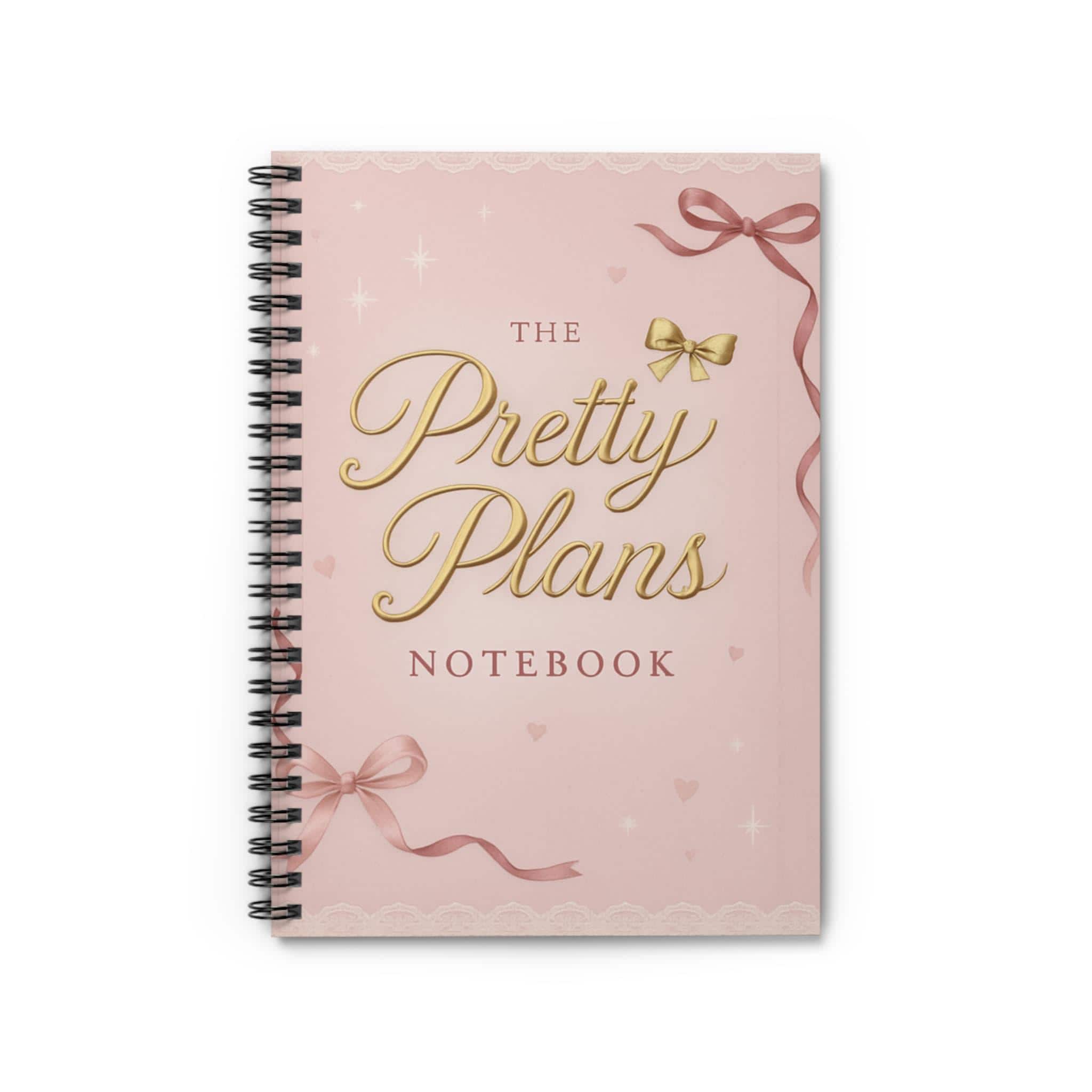 Soft, blush-covered spiral notebook designed for lovers of pretty stationery and organized days. The warm pink cover, gold-script title and delicate ribbon illustrations create a gentle, feminine vibe that invites slow planning and small celebrations. Inside, ruled 90gsm pages take fountain pen, gel ink and everyday pencils well, while a metal spiral lets the notebook lie flat or fold back for quick notes. A hidden document pocket in the back keeps loose receipts, stickers or lists safe between pages. Sized to slip into tote bags and desk drawers, this notebook becomes a sweet companion for planning, journaling, and keeping little moments in order.