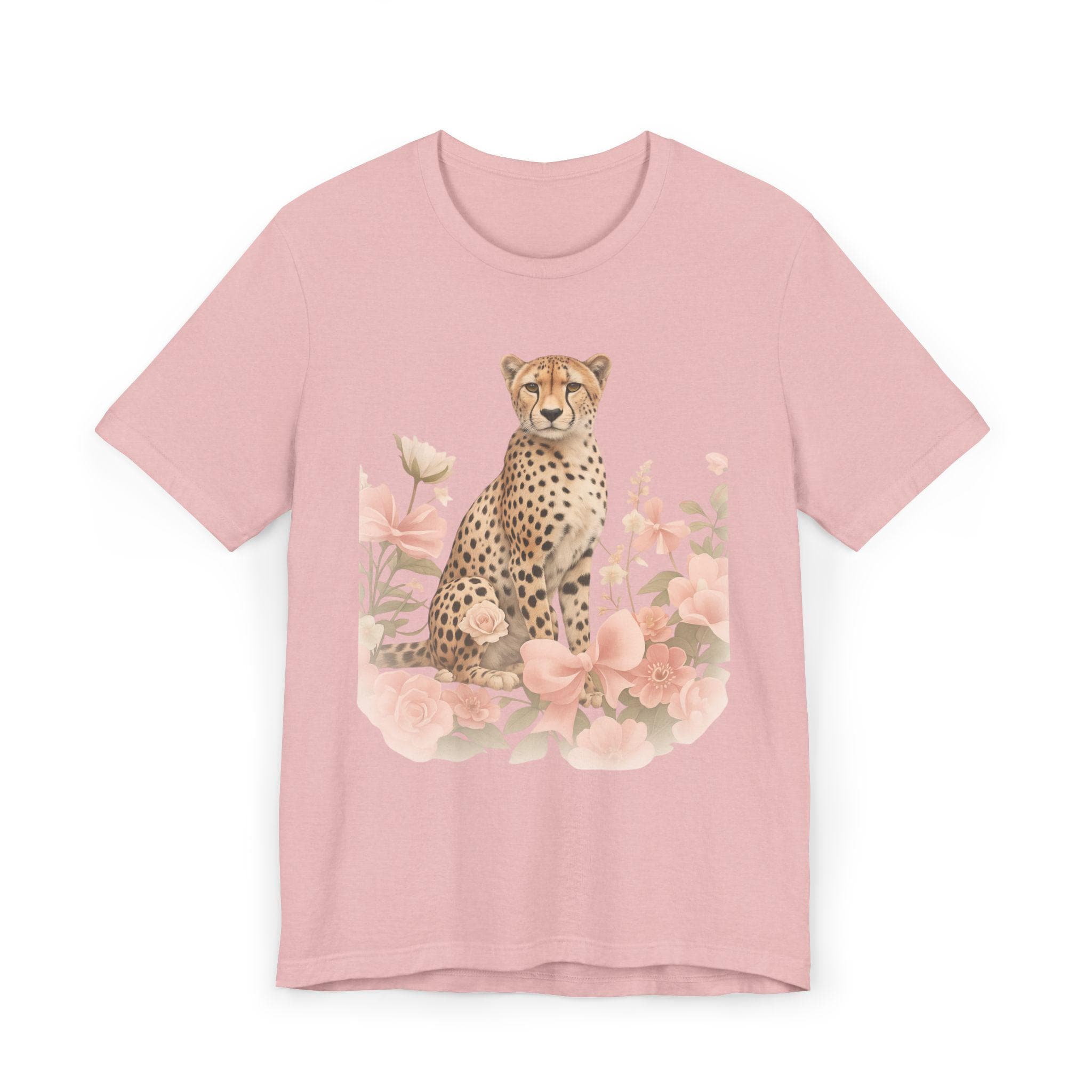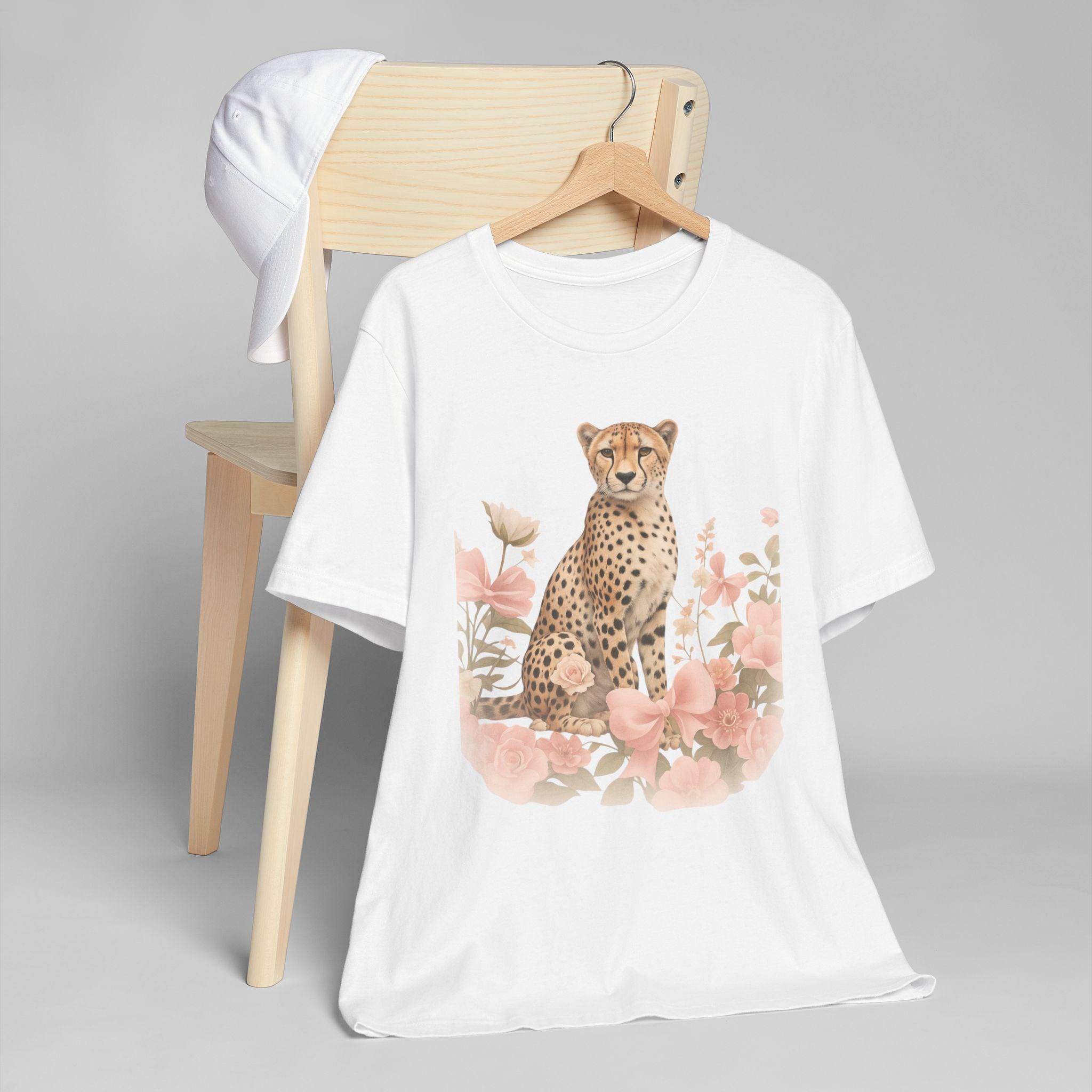 Light as a breath and soft against the skin, this tee carries a quiet, wild grace. A poised cheetah rests among blush blooms, its calm gaze and delicate palette bringing a gentle, nature‑first energy to everyday wear. Wear it on slow mornings with coffee and a book, layered under a denim jacket for strolls through farmer’s markets, or packed for weekend drives where you want comfort without sacrificing subtle style. The vintage‑inspired illustration and muted tones speak to someone who loves animals, botanical details, and clothing that feels lived‑in from the first wear.