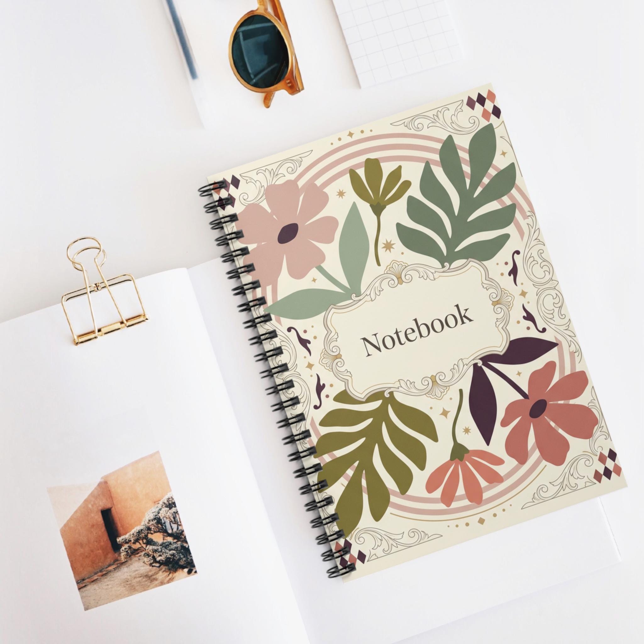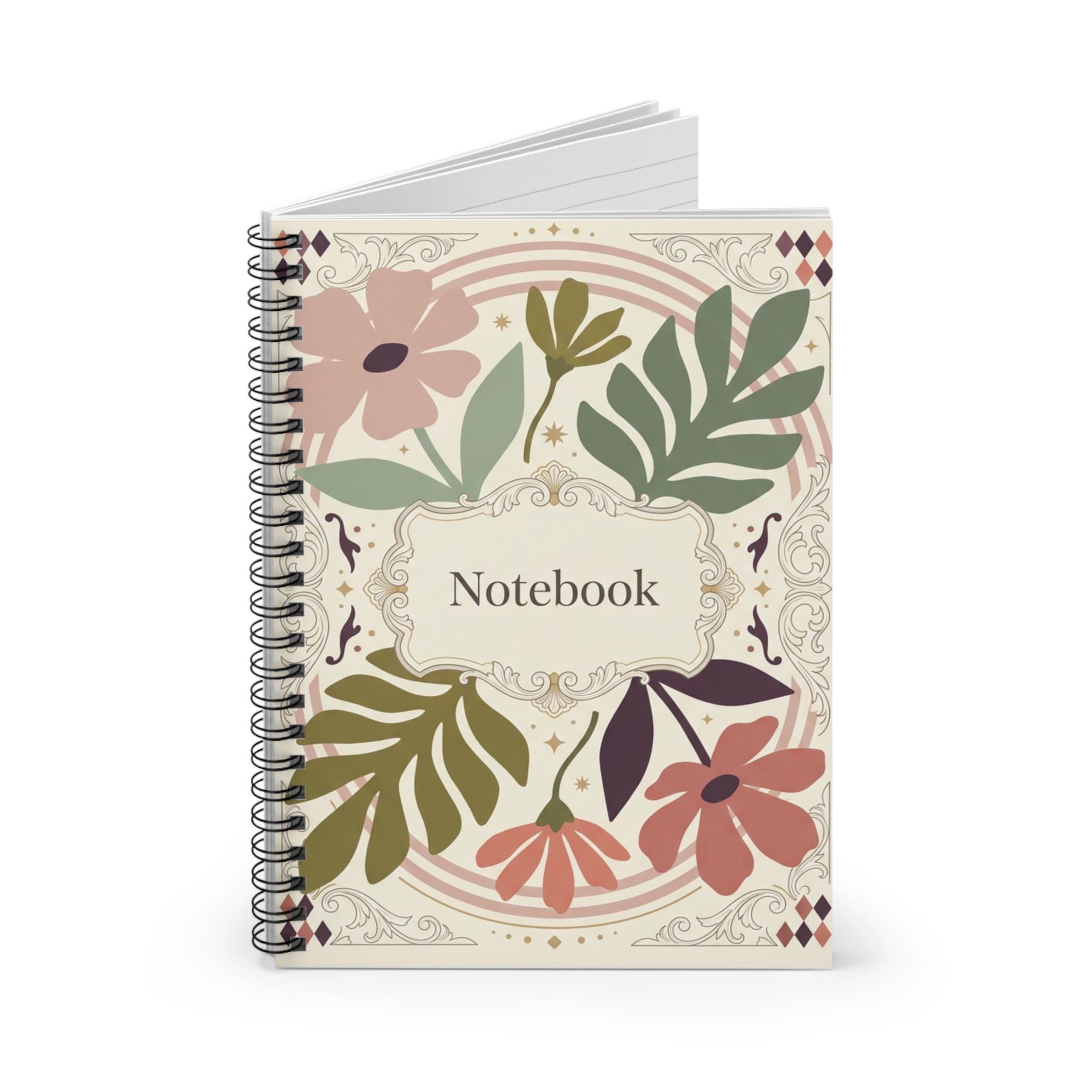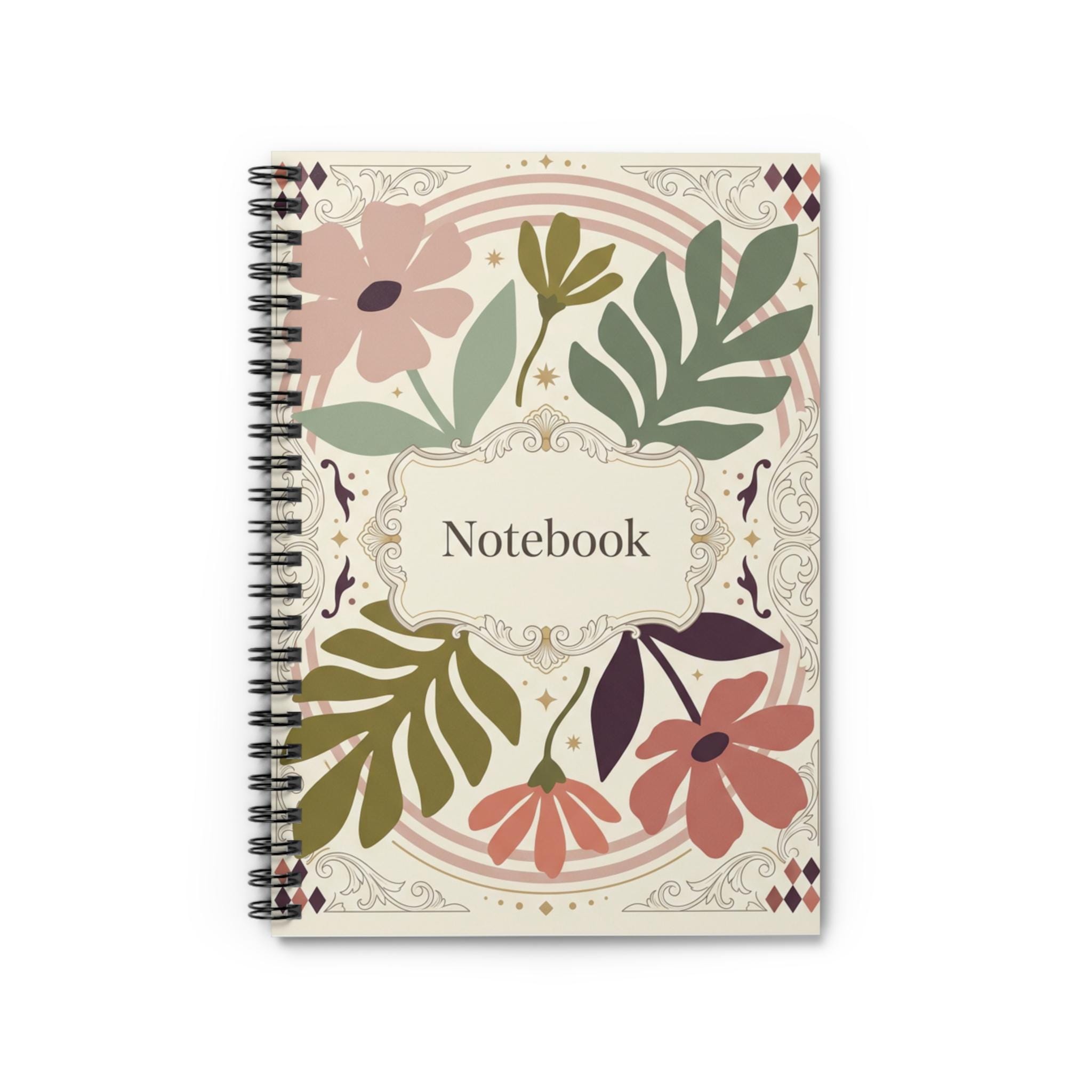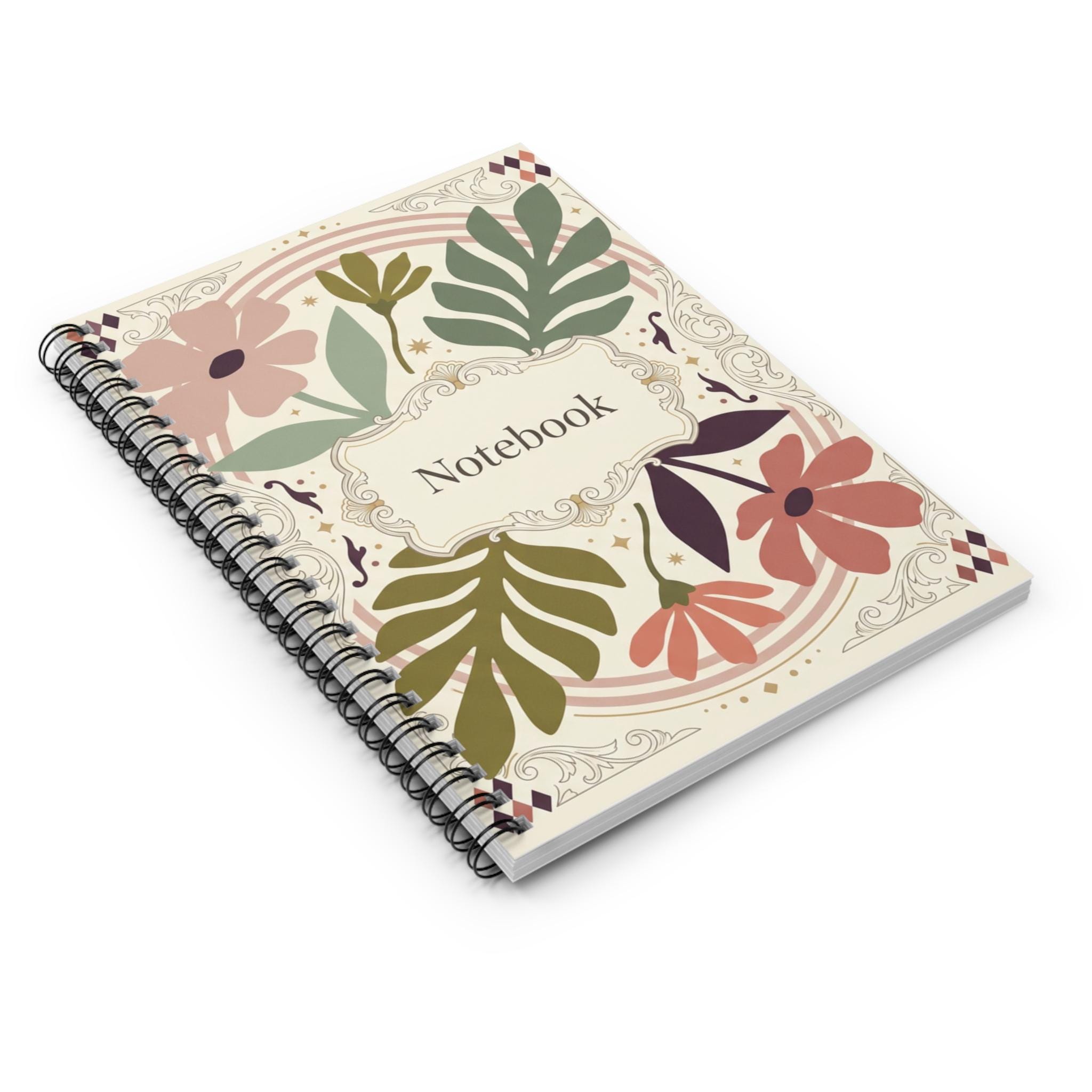This lined spiral notebook brings calm confidence to everyday notes. Its soft floral cover and vintage frame invite you to slow down and write—whether that’s plans, sketches, or garden observations. The metal spiral lays flat for steady handwriting and lets pages be removed cleanly. A hidden document pocket keeps receipts or loose ideas tucked in. Sized to fit a tote or desk, it’s a reliable companion for lists, journaling, or study sessions.
